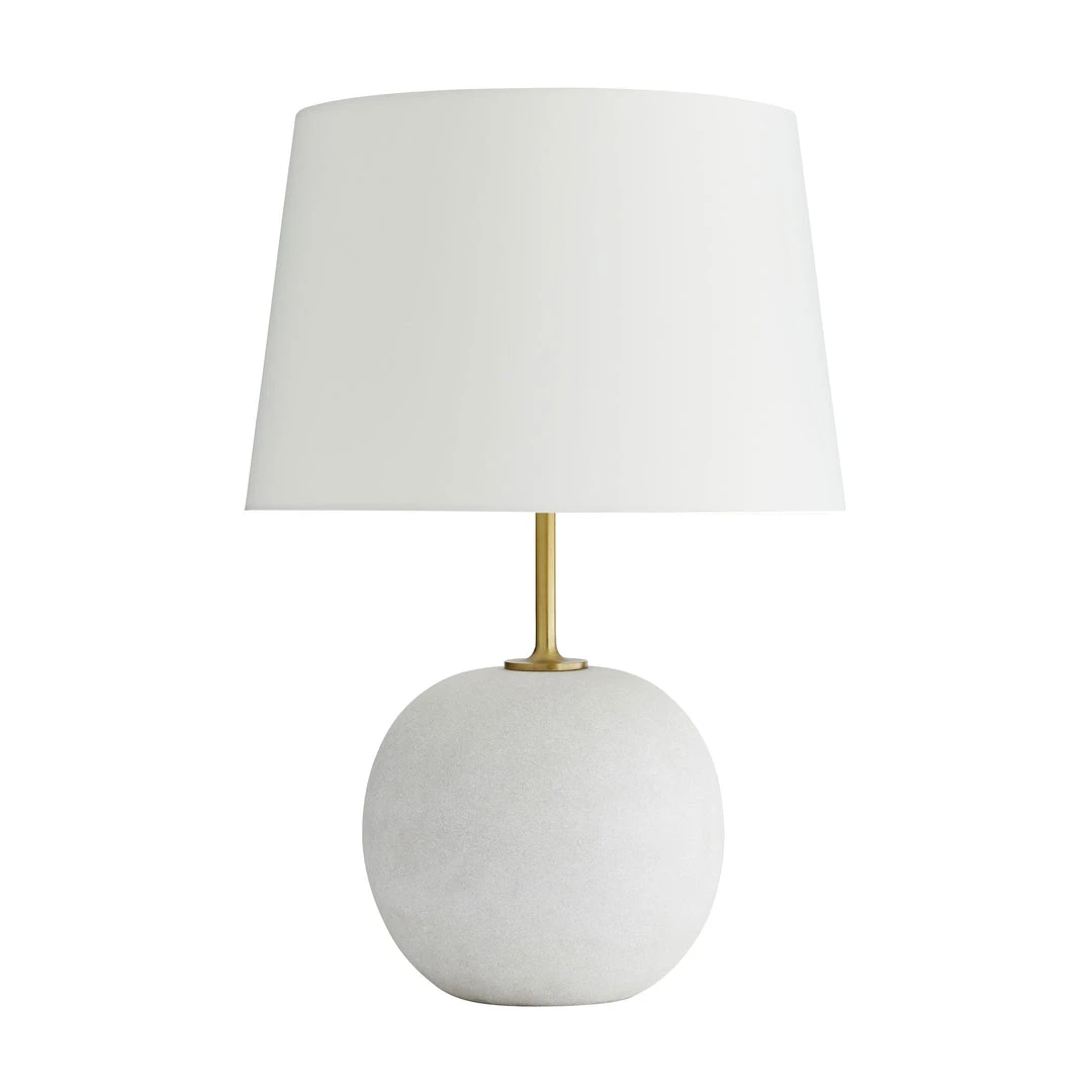 Presenting a polished but modest profile, the Colton Lamp presented by Arteriors Home exceeds expectations with elevated materials and refined style. An exaggerated antique brass stem reveals an oversized white orb foundation composed of rice stone. The Colton serves as a functional art piece in its simplest form for traditional and modern settings. Topped with an ivory microfiber drum shade with ivory cotton lining and a 1″ brass sphere finial, place the Colton in pairs in the Master Suite or living room. *Finish may vary.