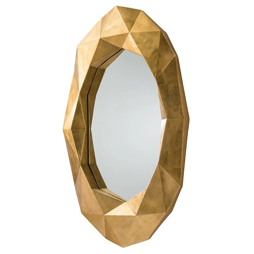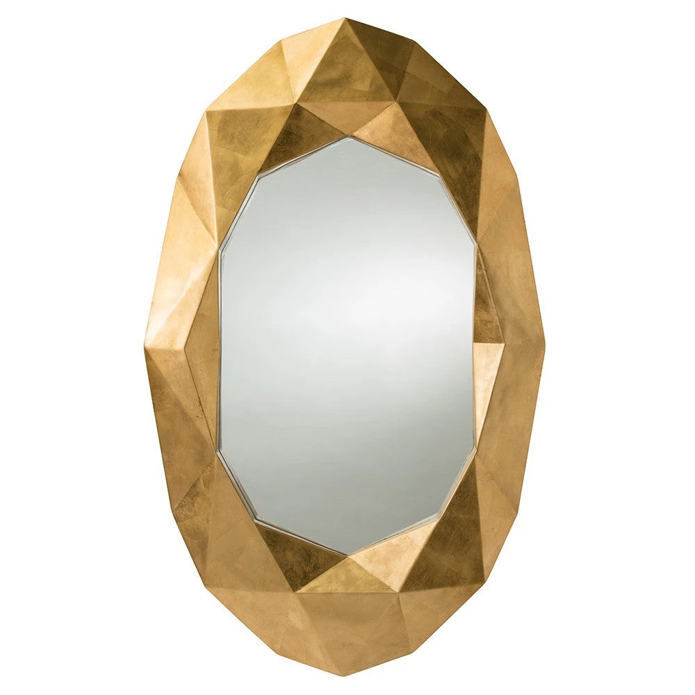 The Arteriors Home Fallon Wall Mirror is larger than life! This modern mirror boasts a fascinating frame made up of exaggerated facets and geometric shapes. The Fallon Wall Mirror’s gold leaf finish gives the contemporary mirror a luxe, elegant feel, while its sharp angles and subsequent shadows add a hard edged dimension. Mirrors that can be hung  vertically or horizontally create more options for use such as using a pair for bathroom mirrors or bedroom mirrors.