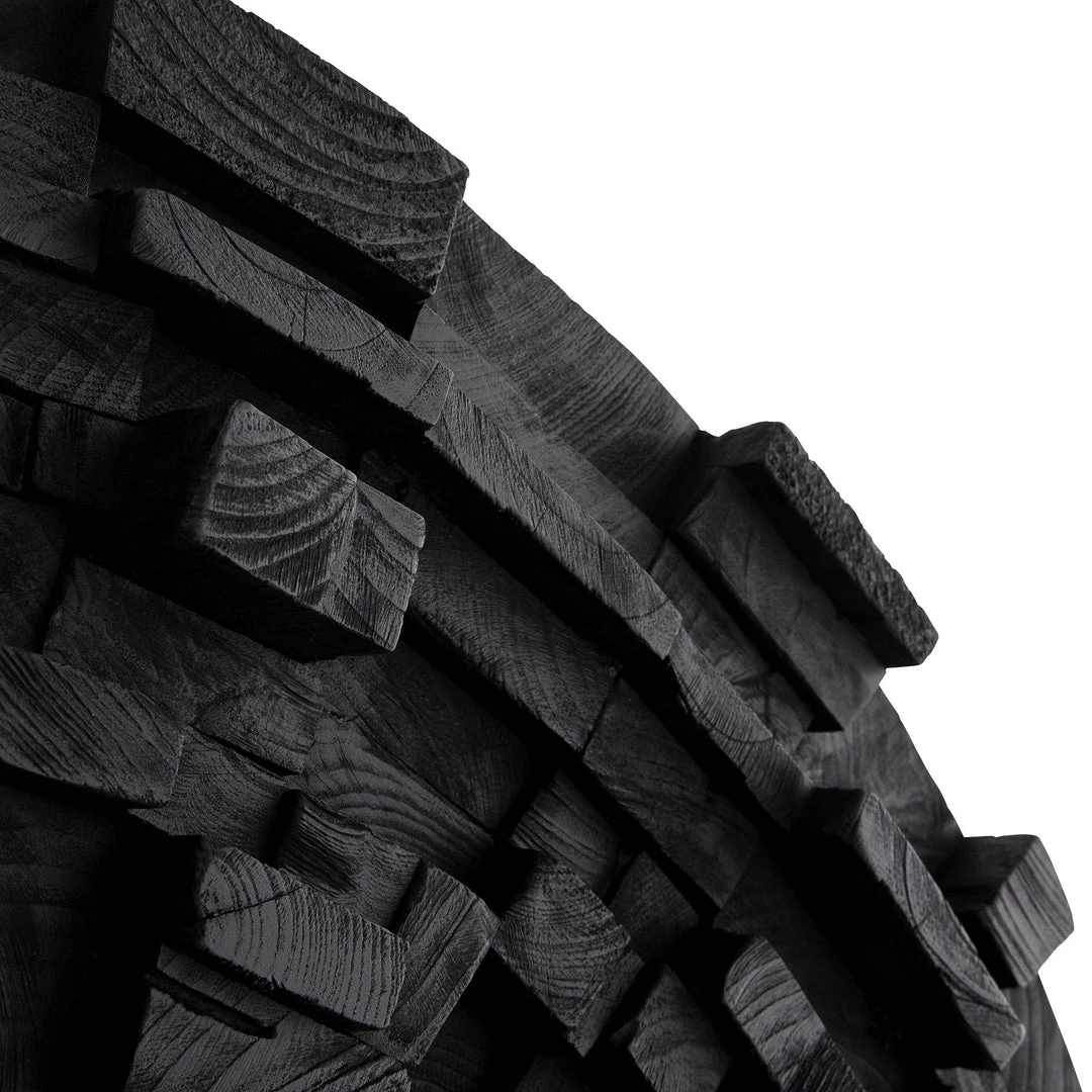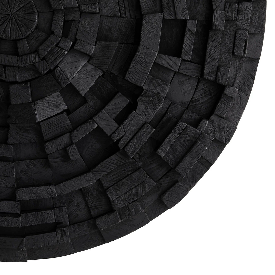 Visually intricate yet bold in its simplicity, the Jabari Wall Plaque from Arteriors Home is a unique art piece for your home. This wall art is made using slices of teak wood root cut to varying levels. The finished disc, roughly three inches thick, is brushed in a sophisticated black finish, accentuating the radial pattern. Due to the nature of the wood, textures and hues will naturally vary, making each one a one-of-a-kind work of art. *Security cleat hanging hardware included.Â