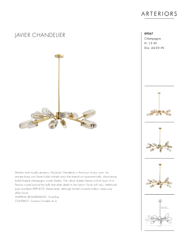 SKU: arteriors-home-6735698493488 Categories: Arteriors, Arteriors Home, Brands, Chandeliers, Chandeliers, Dining Room, Kitchen & Dining, Lighting, New, New Arrivals Tags: 12 light chandelier, Arteriors chandelier, Arteriors lighting, Chandelier, Glass chandelier, Instock, Javier, Nov2021