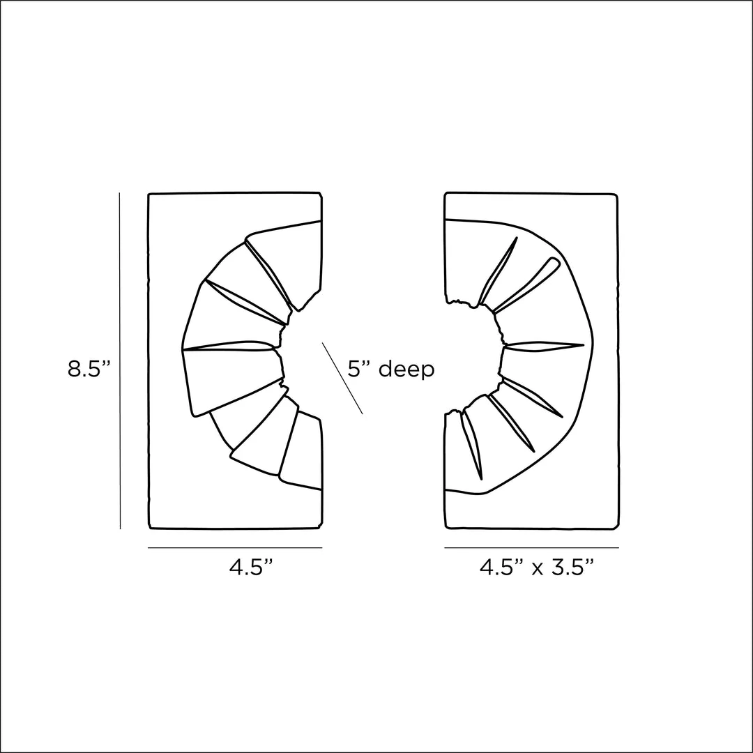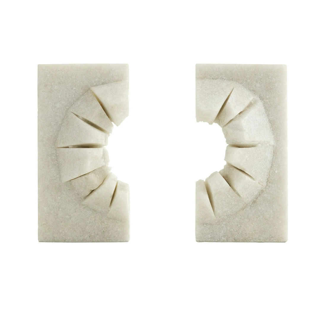 The jagged features of the Kylo Bookends from Arteriors Home create an explosive illusion. Drawing the eye in for a compelling intersection of form and function. Artistically cast in the rich texture of ivory ricestone, Smooth and rough surfaces contrast to provide a dramatic sculptural element to a bookcase or tabletop. *Ricestone will vary.