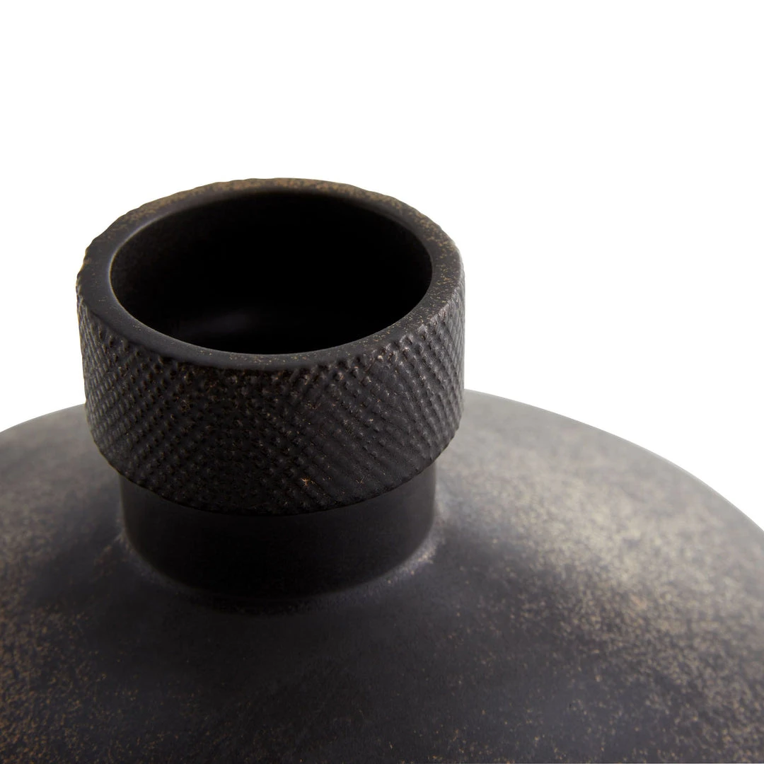 The Matteo Vase from Arteriors Home is a bold porcelain vase that is the epitome of industrial refinement. A contrast in clean lines and a hand-brushed bronze finish gives the earthenware a unique polish and texture with the etched knurled top and chattered texture.*Finish will vary.
