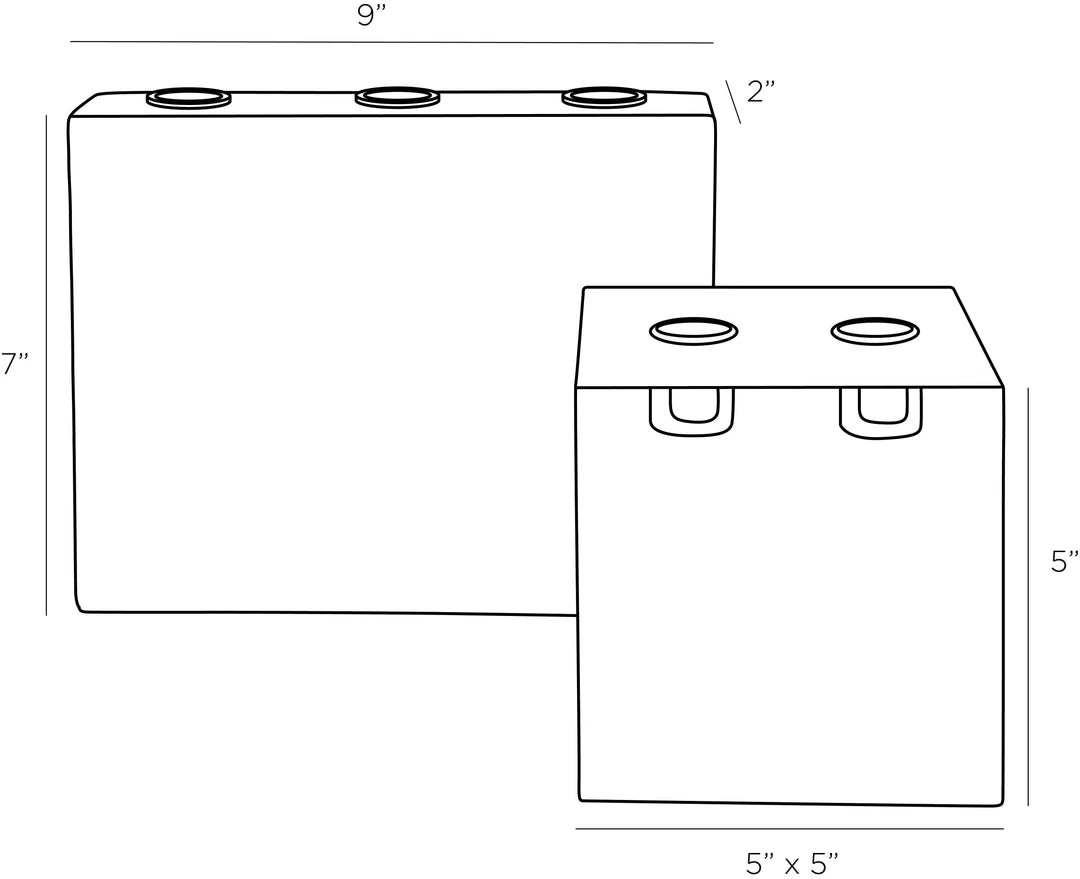 | Dimensions | Set of Two: 5' High x 5.5" Wide: 7" High x 9" Wide x 2" Deep |