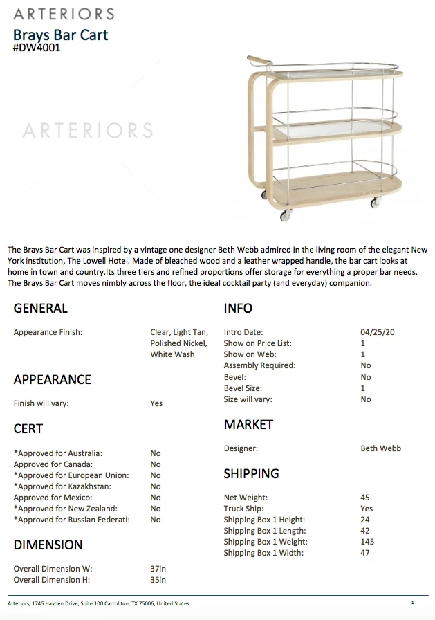 Be the first to review “Arteriors Home New Arrivals Brays Bar Cart” Cancel reply