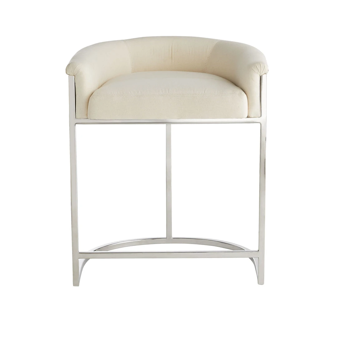 The Arteriors Home Calvin Counter Stool in Muslin and Polished Nickel offers comfortable seating with the ultimate in versatility. The dropped back and arm height is designed to slide perfectly under the kitchen counter when not in use. The seat is covered in muslin, allowing you to reupholster in the fabric of your choice. Counter stools like the Calvin from Arteriors Home add chic sophistication to modern, contemporary decor schemes.