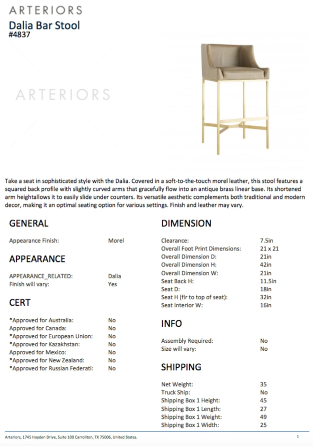 Be the first to review “Arteriors Home New Arrivals Dalia Bar Stool Morel” Cancel reply