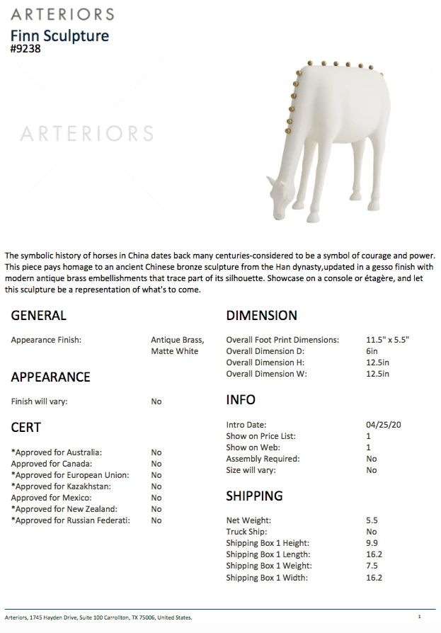 Be the first to review “Arteriors Home New Arrivals Finn Sculpture” Cancel reply