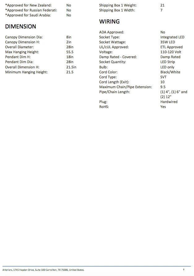 | Materials | Steel; Bronze; Socket Type: Integrated LED; Socket Wattage:35W LED; UL/cUL Approved: ETL; Socket Quantity: LED Strip; Bulb: LED only |