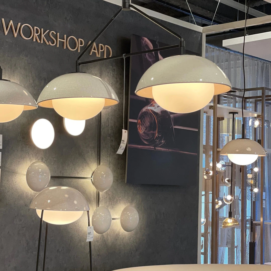 The Glaze collection from Arteriors Home and Workshop/APD is an ode to hand craftsmanship, inspired by beautiful glazed tableware and ceramics that reveal the hand of the maker. The Glaze Linear Pendant’s super geometric blackened steel armature – elevated by textural knurled detailing – is paired with rounded ceramic shades in a unique ivory-stained crackle glaze and soft frosted glass that casts a flattering glow. A showstopper designed to hold its own, the glaze pendant also offers endless installation possibilities when hung in multiples or with coordinating single glaze pendants for large spaces and public installations. *Additional pipe available PIPE-465