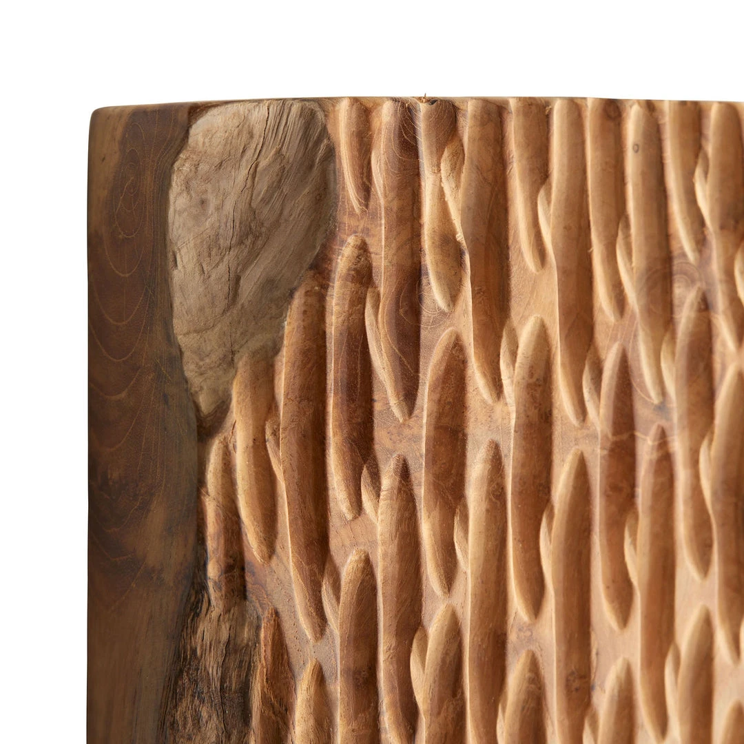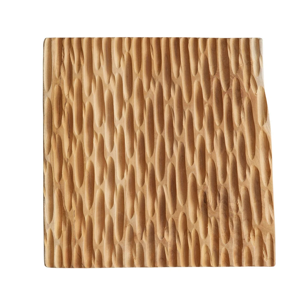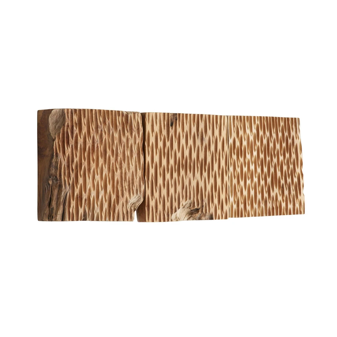The Kalona Wall Plaques Set of Three from Arteriors Home introduces natural texture and movement to an interior. Each plaque is made from Teak wood root, carved with rich lines reminiscent of gentle ripples in sand dunes. Sanded smooth and left with its natural coloration. The organic hues and textures of the material come through, finish and teak wood will vary. *Security cleat hanging hardware included.