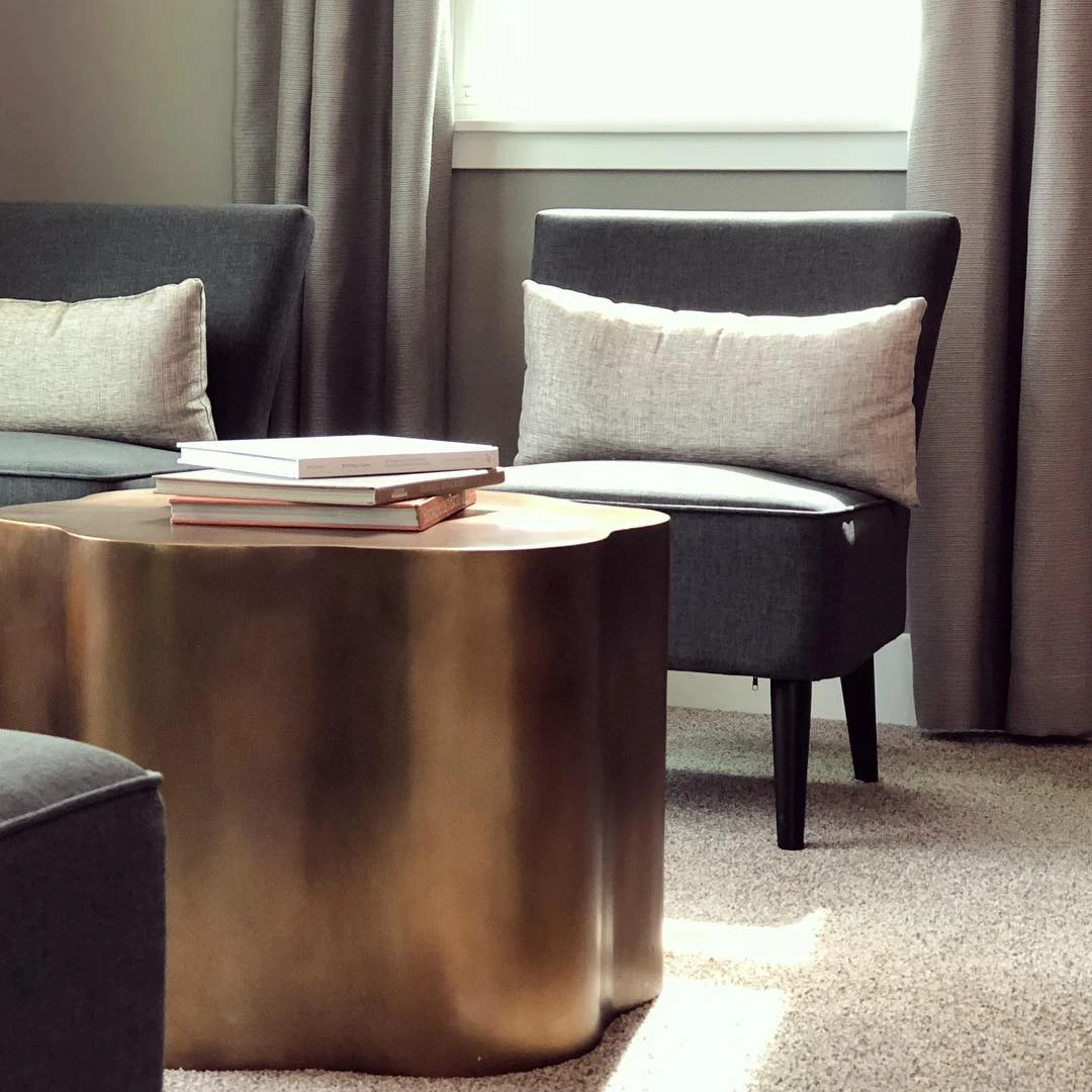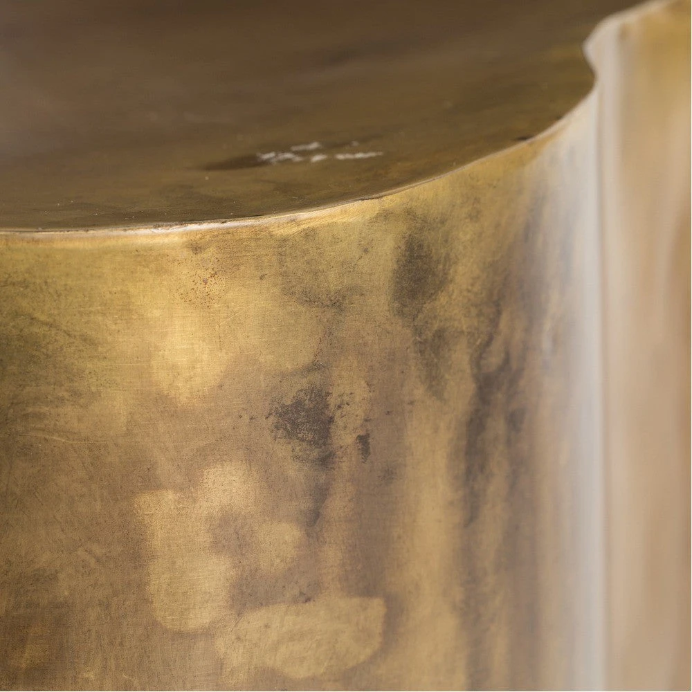 The Arteriors Home Lowry Side Table in Antique Brass finished iron showcases a uniquely irregular design that is a perfect, low side table for living rooms! Consider using the Lowry Side Table from Arteriors Home on either end of a sofa, or, for added drama, use several of these side tables in place of a single coffee table in front of a long sectional. A versatile piece of furniture, the Lowry can also be used as a planter by simply turning it upside down!