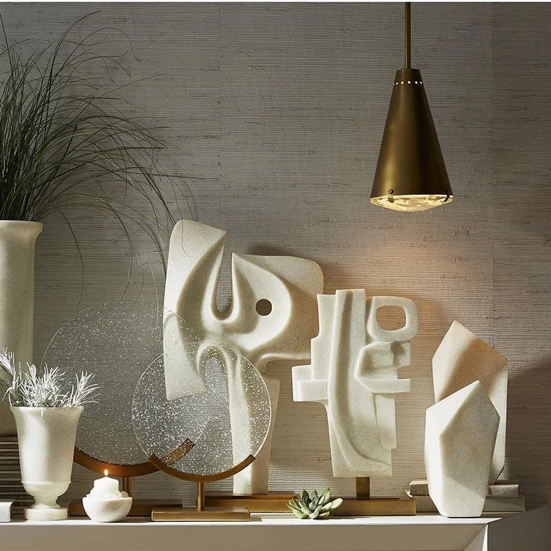 The Martin Sculpture from Arteriors Home showcases a unique, modernist sculpture for your space. The Martin is crafted from ivory resin and is double sided to display from either the left or right.  Sitting atop an antique brass finished metal base, place the Martin individually for a simple and striking look or in a collection of sculptures in a tabletop gallery.Â