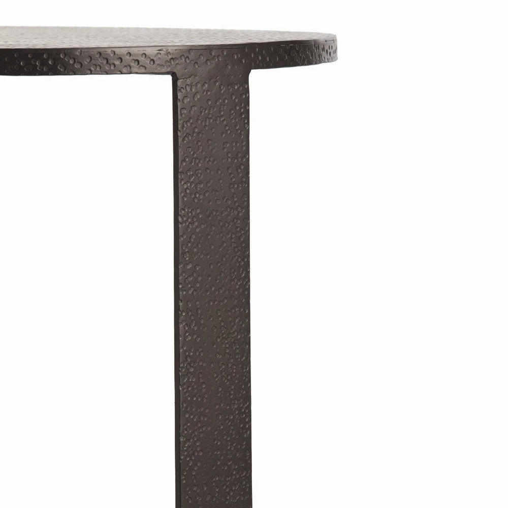 The Arteriors Home Ramiro End Table features minimalist hammered iron accent table with black wax finish. The Ramiro is a perfect addition as a bedside table or side tables for the living room. Â The round shape of the Ramiro makes it easy and super functional.