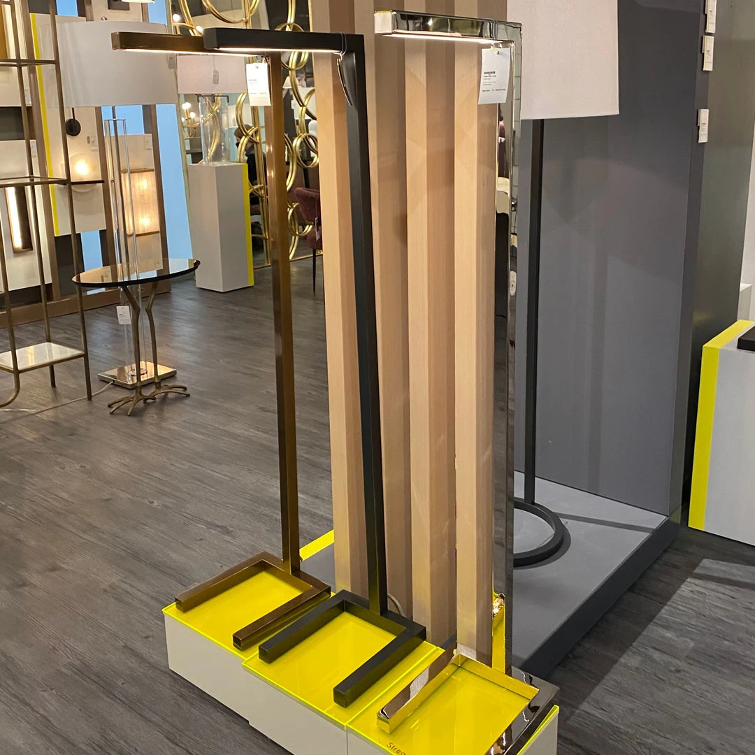 Sleek and simple in form and aesthetic, the Salford Floor Lamp in Polished Nickel from Arteriors Home exemplifies ultra-modern style. It’s built of steel to give it clean lines, perfectly angular joints, and a shiny polish; the completely linear frame allows it to tuck neatly into a reading chair or sofa to reduce its footprint in the room. An LED strip is nicely concealed into the frame. To give the modern look a bit of a twist, it is entirely finished in polished nickel. Fitted with a full-range dimmer on a black cord.