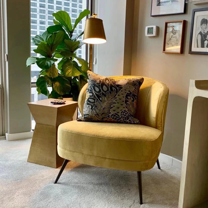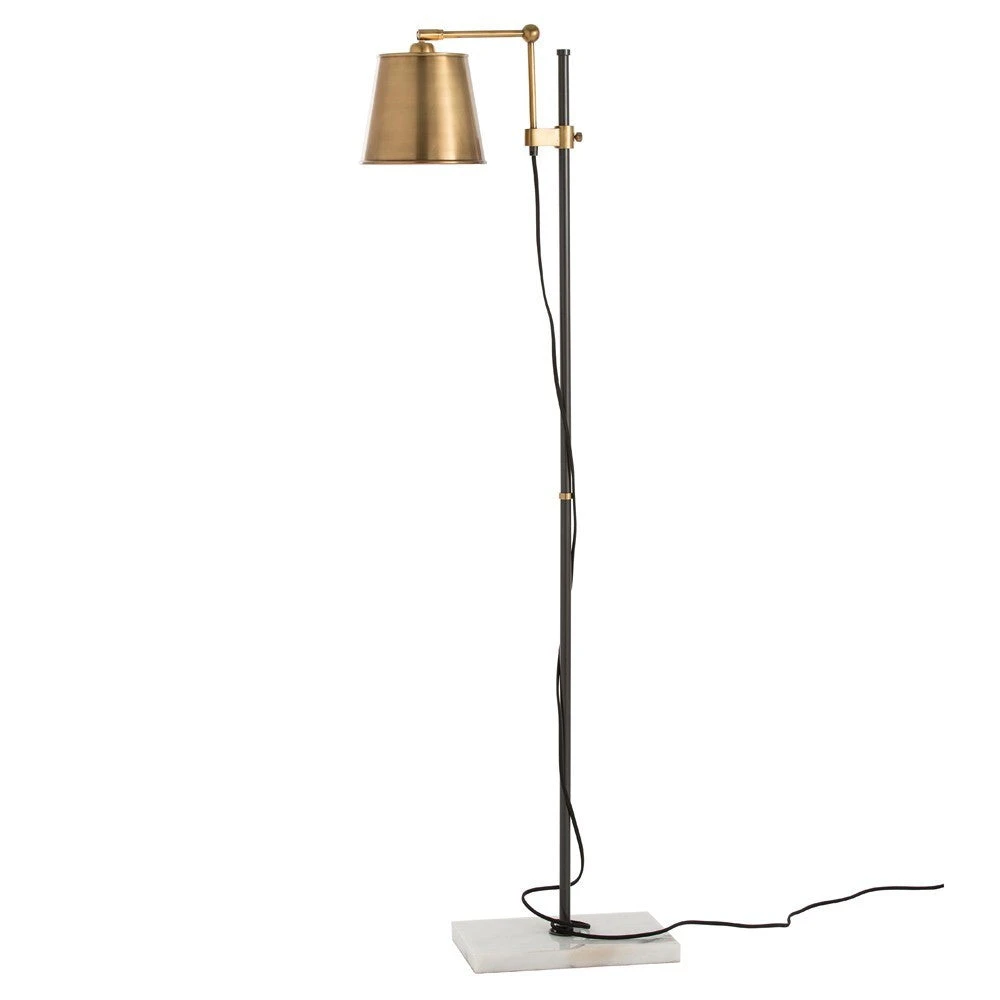 The Arteriors Home Watson Floor Lamp features a vintage brass adjustable shade, attached to a bronzed steel rod. Supported by a snow marble base, the Watson has an exposed black cloth cord that can be artfully wrapped around the rod to add to its charm. The style and scale of this modern floor lamp from Arteriors makes this the perfect lighting for smaller chairs or tight spaces. Floor lamps like the Watson are great for an office, living room, reading nook, sitting area, or bedroom corner. *Marble may vary.