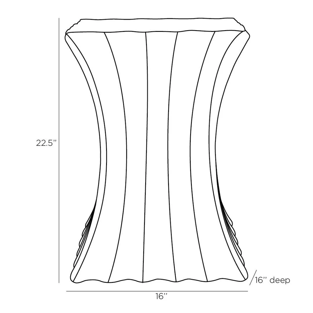 The Wave Side Table designed by Celerie Kemble for Arteriors Home features a fluted design in travertine-toned concrete. Perfect for a multitude of rooms, the tucked waist, and scalloped edges make for a unique design. *Finish will vary.