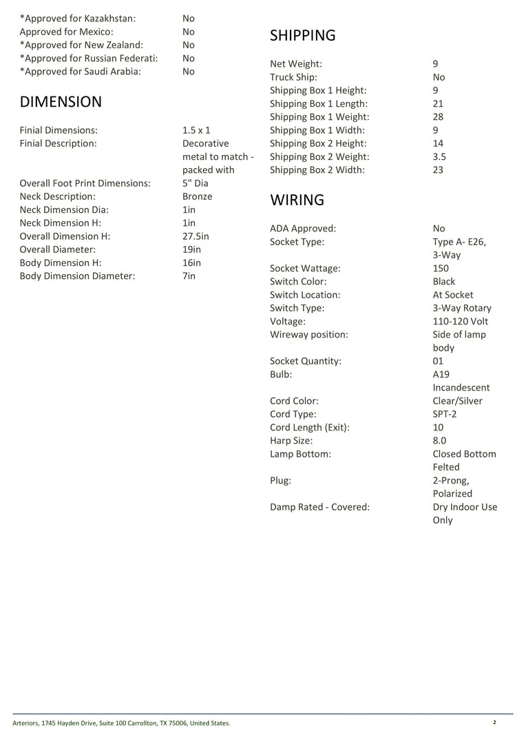 | Materials | Bronzed Aluminum; White Linen Drum Shade |