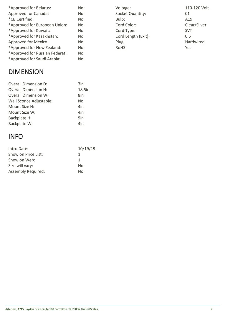 | Materials | Glass; Steel; Antique Bronze; Socket Type: A – E26; Socket Wattage:40; Socket Quantity:01; Bulb: A19; Cord Length (Exit):0.5 |
