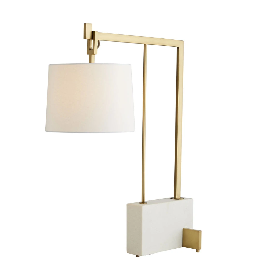 The sleek and elegant Piloti Table Lamp from Arteriors Home is the perfect task or desk lamp. The steel arm allows the light to hang over a work surface. But the Piloti also functions beautifully atop an end-table. The faux marble base is the perfect weight to ensure the elegant architectural arm is stable and strong. Topped with a linen shade, the Piloti is the ideal choice for living spaces and offices alike.