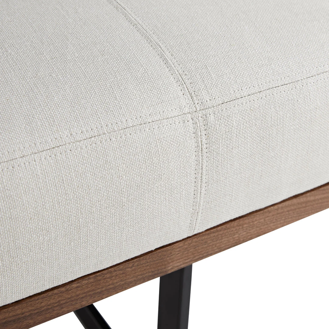 Wildly versatile, the Tuck Bench by Ray Booth for Arteriors Home, is a cozy seat at the foot of a bed, in an entry, corridor or even in a living room. Designed through an architectural lens, the steel stock legs support the seat and floating back. The combination of steel, walnut wood and bone linen fabric makes for a handsome addition to the home.
