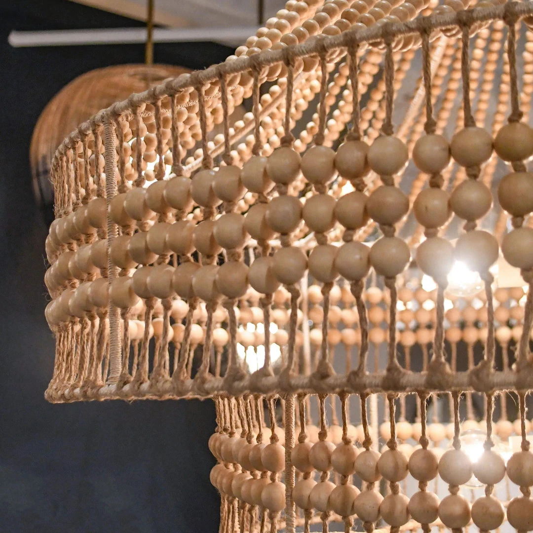 A twist on the traditional empire chandelier, the Tulane Chandelier from Arteriors Home projects a strong presence while remaining light as air. The tiered construction is crafted from hand cut wooden beads strung along an abaca frame, delivering a rustic feel to its feminine form. The large, open structure of this beaded chandelier allows light to cascade down each layer and brilliantly light up your surroundings. Due to the handmade nature, slight variances may occur. *Additional chain available (CHN-204).