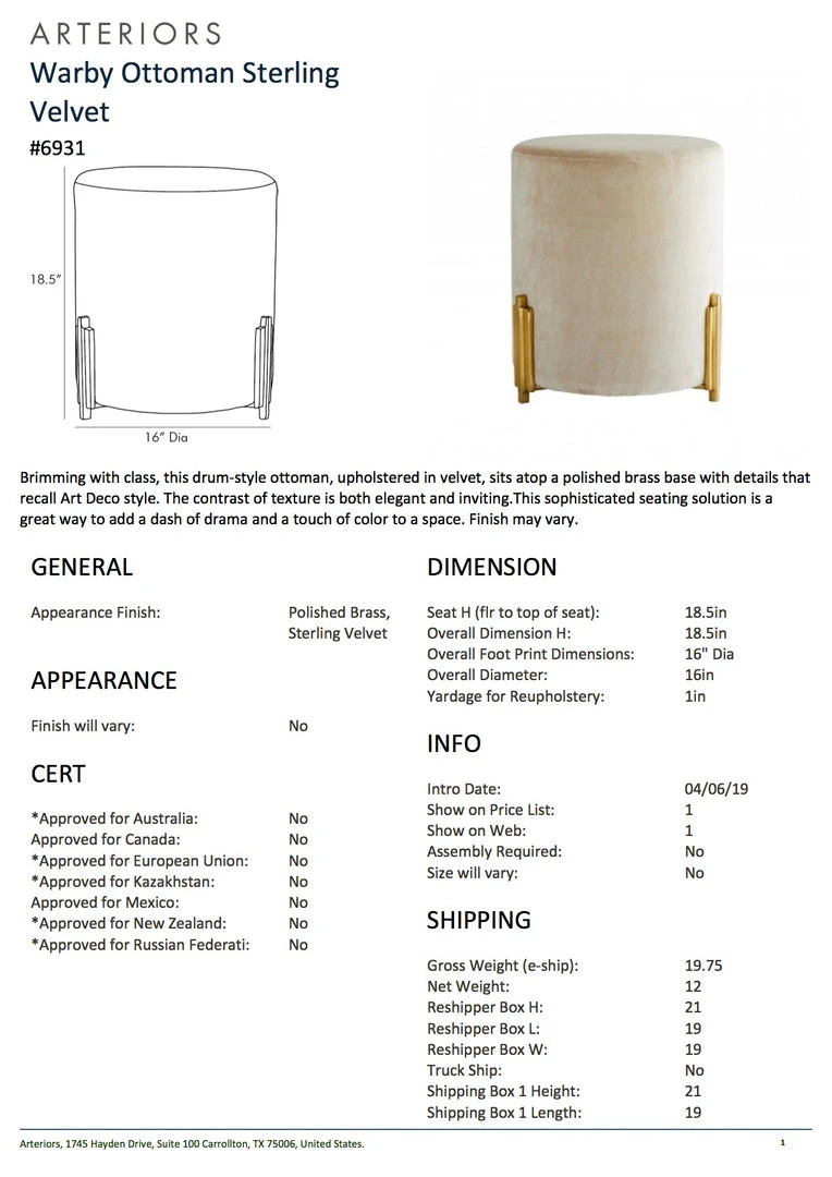 Be the first to review “Arteriors Home Warby Ottoman Sterling Velvet” Cancel reply