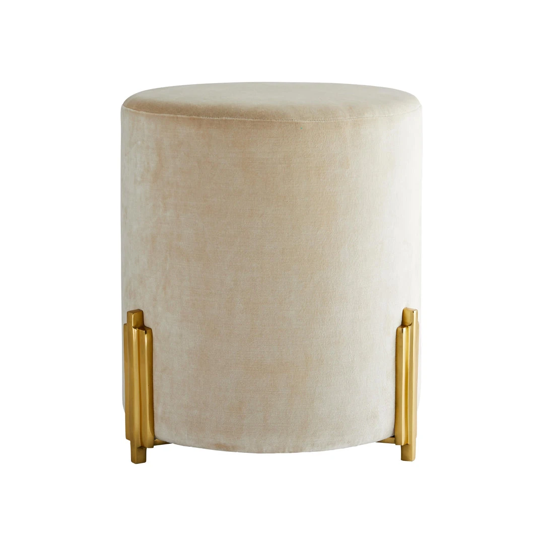 Upholstered in luxurious velvet, the Warby Ottoman from Arteriors Home sits atop a polished brass base with details that recall Art Deco style. The contrast of texture is both elegant and inviting. This sophisticated seating solution from Arteriors Home furniture is an ideal way to bring a dash of drama and a touch of color to your space. *Finish may vary.