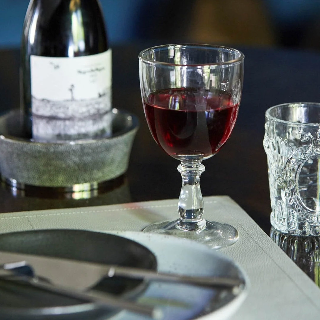 The Angelica Wine Coaster in Cool Gray from Blue Pheasant protects tables in style. This realistic faux shagreen piece with silver metal detailing is great for anyone who entertains and makes a stunning gift when being entertained. A simple bottle of wine is elevated to a new level when paired with the Angelica. Wipe clean with a dry cloth.