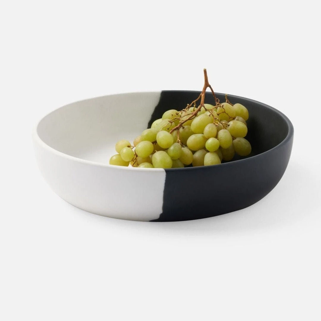 The ultimate neutral canvas to showcase any dishes, the Maxton Serving Bowl Large from Blue Pheasant features a stark black and white contrast and smooth finish. Hand wash only, not microwave safe, not dishwasher safe, not oven safe, and not freezer safe. Variation to be expected. Comes in two sizes.