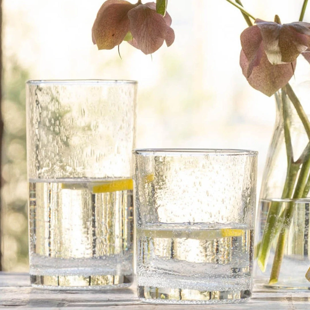 Set a table that bubbles with energy with the Quinn Clear Glass Tumbler from Blue Pheasant. Quinn’s effervescent hand-blown glass can inspire creativity—perfect for craft cocktails, such as tealight votive candle holders, or creating buzzy vibes. *Set of 6.