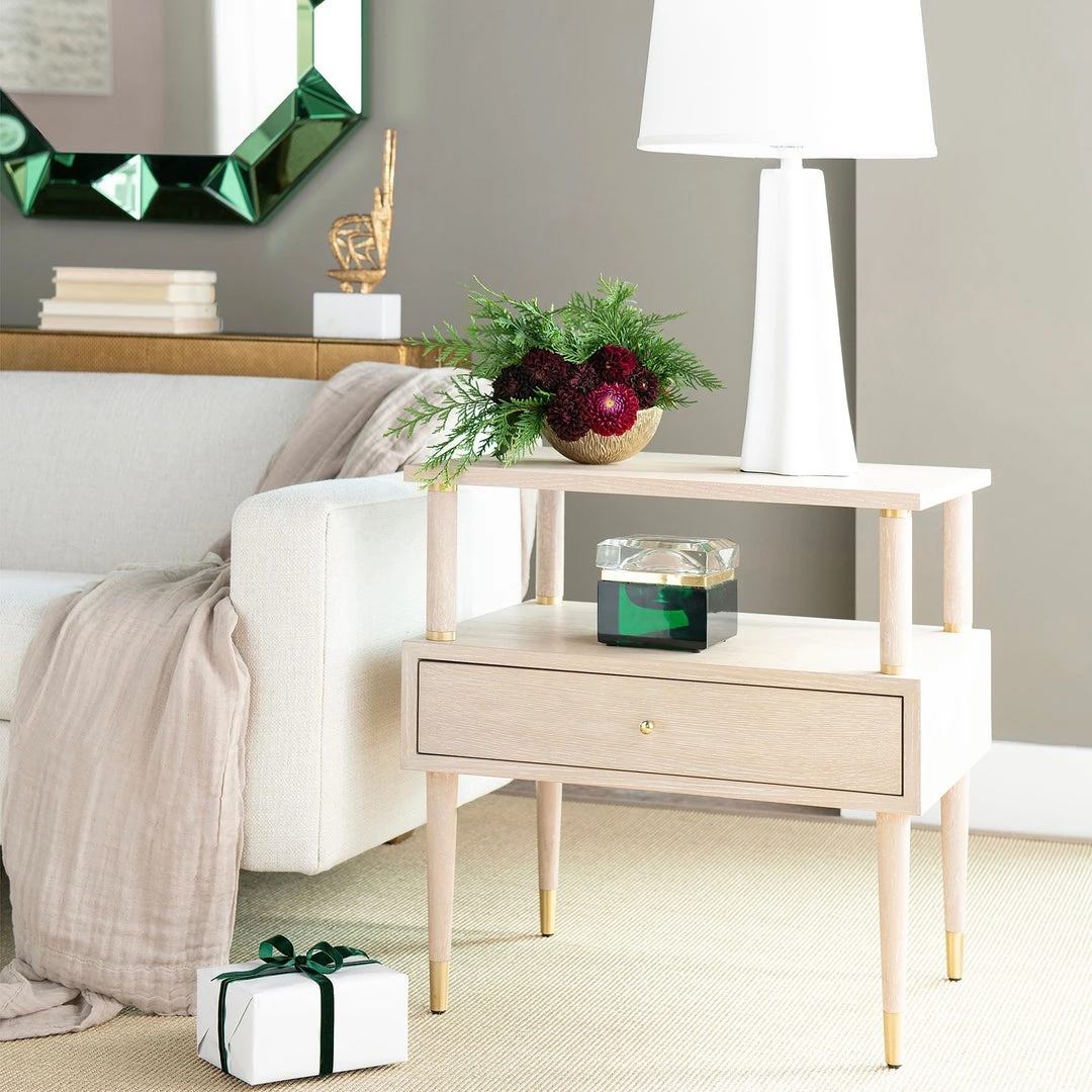 | Material | Clear Glass Top; Colored Base;Polished Brass Trim |