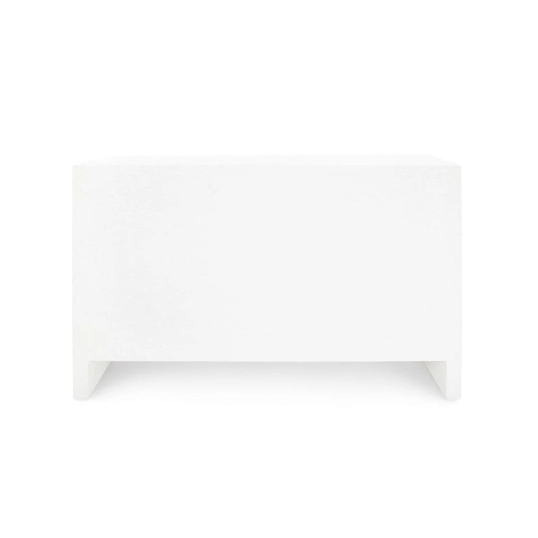 The Morgan Extra Large 6 Drawer Chest in White from Bungalow 5 offers a fresh and modern take on simple shapes and refined proportion with a luscious lacquered grasscloth texture. The Morgan captures resolved architecture and textural interest with a discrete storage option that is both monumental and demure. Place the Morgan in bedrooms as well as living spaces and entryways.