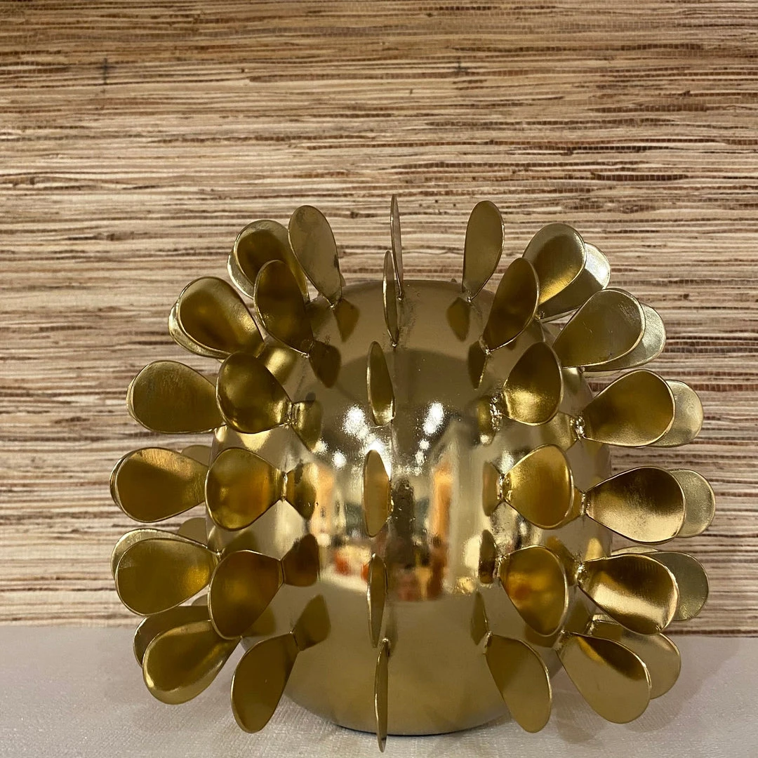 The Andorra Vase in Brass from Bungalow 5 is an under-the-sea treasure that’s equal parts decorative art piece and a functional vessel. Inspired by the magical mystery of marine life, our artisans have designed several fantastical showpieces modeled after organic forms. This one takes inspiration from a blowfish, where a series of fins are attached to a round vase, creating the piece with both a dynamic repeating pattern and a sense of movement. It can host cut flowers, serve as a centerpiece for a glam dining room table, or add some whimsy to a side table or console.