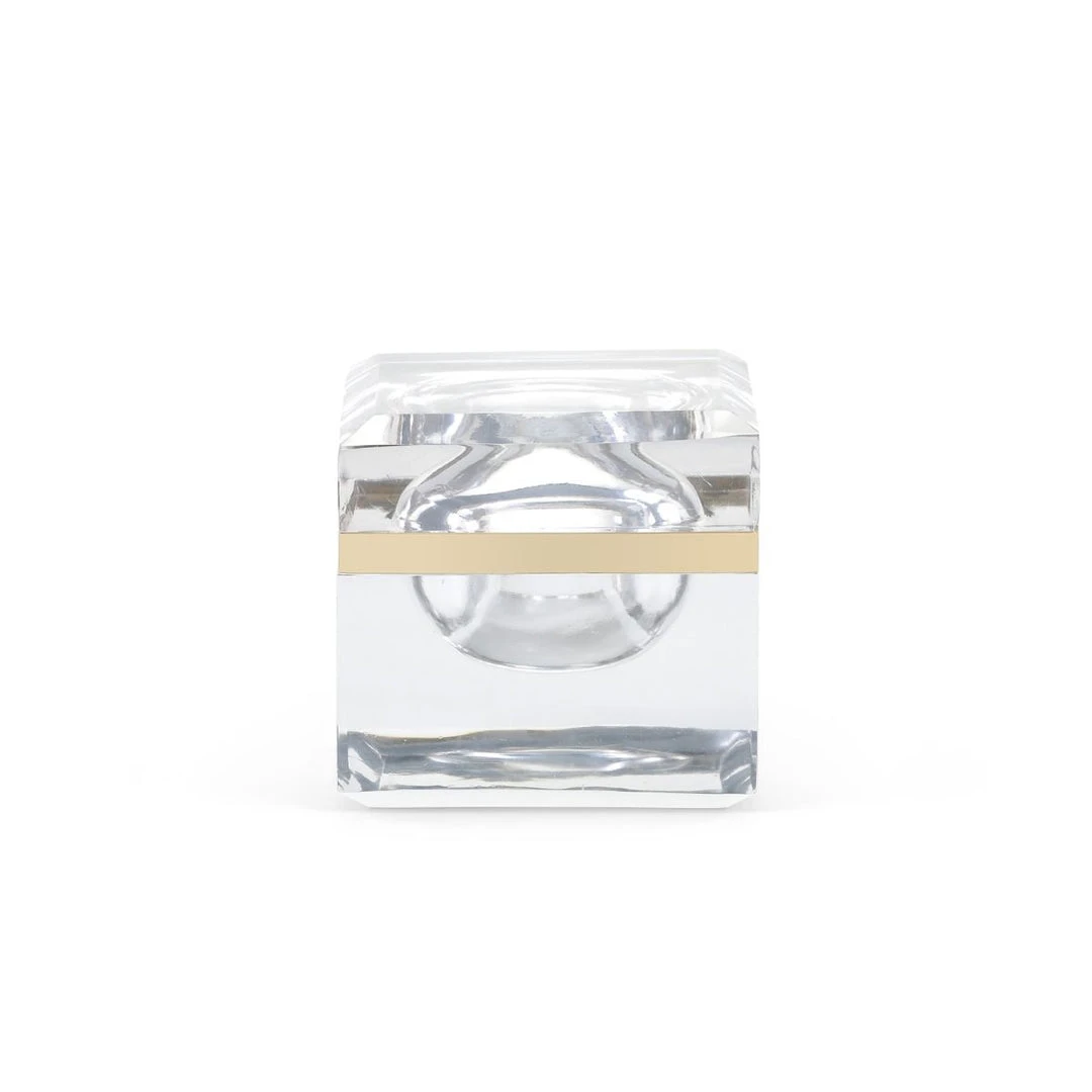 The Barleto Box in Clear from Bungalow 5 is a glamorous curio made of thick, cast glass with brass banding. By emphasizing its geometric shape, this striking accessory is distilled with an old Venetian design and made chic with a modern appeal.  The Barleto is the perfect gift or addition to bookshelves and desktops alike.