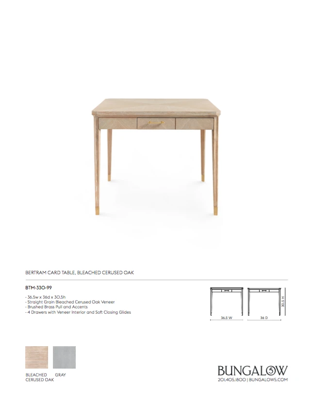 Be the first to review “Bungalow 5 New Arrivals Bertram Game Table Bleached Cerused Oak” Cancel reply