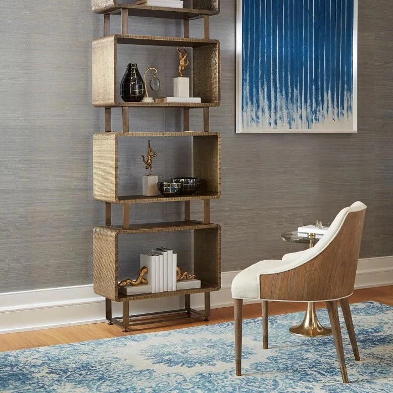 Grace and modern design are beautifully paired in the Orion Armchair from Bungalow 5. This versatile accent chair features tapering legs, sloping arms and custom cast brass sabots evoking elegance and sophistication. The contemporary driftwood finish highlights the beautiful grain creating a striking versatile seat that can be used in a wide variety of decorating schemes.
