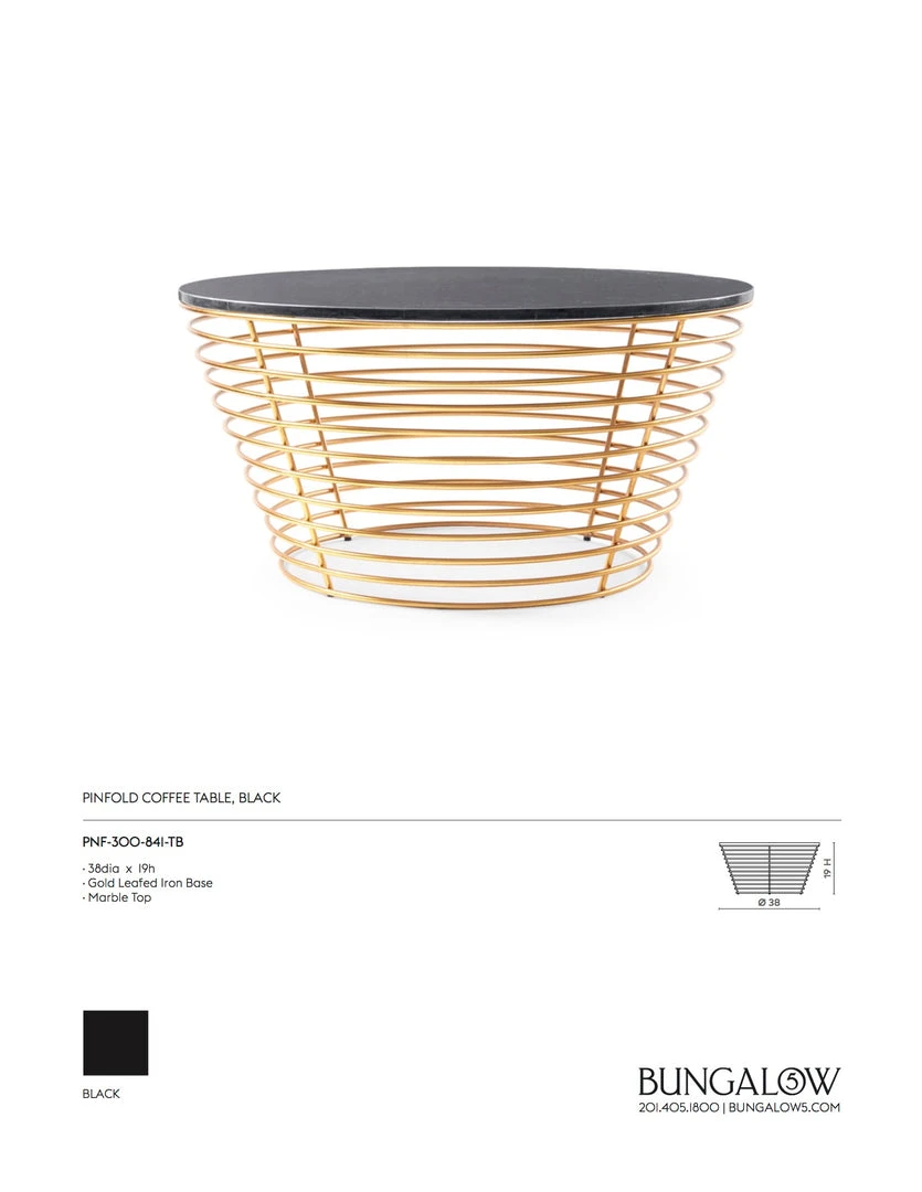 The Pinfold Coffee Table from Bungalow 5 harkens back to the early period of modern design where simple geometry and repetition were employed to make a visual statement. Here, a series of golden rings ascend from the base and rise to a glossy black granite top. It is arresting in its simplicity and beauty. Pair with the Pinfold Side Table for the ultimate designer look.