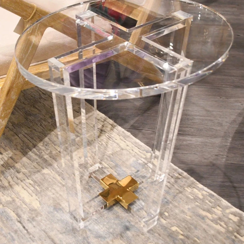 The Otis Side table from Bungalow 5 is a ghost of a table that whispers its presence with the cast brass “X” embedded in its base. The low profile, achieved through the use of transparent acrylic, combined with its architectural sensibility, makes it an extremely versatile piece. The Otis is a stylish design addition for living spaces, bedrooms and home offices.Â
