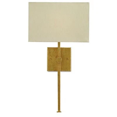 Dignified and distinctive, the Ashdown Wall Sconce offered by Currey and Company showcases a chic, champagne silk shade juxtaposed with an industrial style frame. This gold leaf finished lighting works well with a myriad of decor schemes in homes and offices!