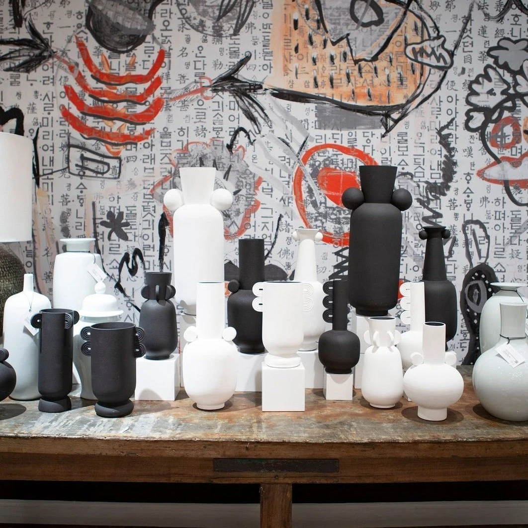 Proving artisanal prowess with striking materials is the Happy 40 Three Wings Vase in White from Currey and Company. The ceramic body of this vase was inspired by the “Art Decoratif” period and is hand-thrown. With the designs that have handles, they require great skill to adjust to the sides of each vase symmetrically. The necks of these decorative vases are straight, which means they do not have a circular edge at the mouth to reinforce them during baking; and the texture is hard to obtain, which means they have to be fired at a special temperature.
