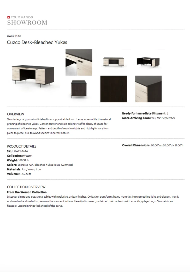 Be the first to review “Four Hands Cuzco Desk Bleached Yukas” Cancel reply