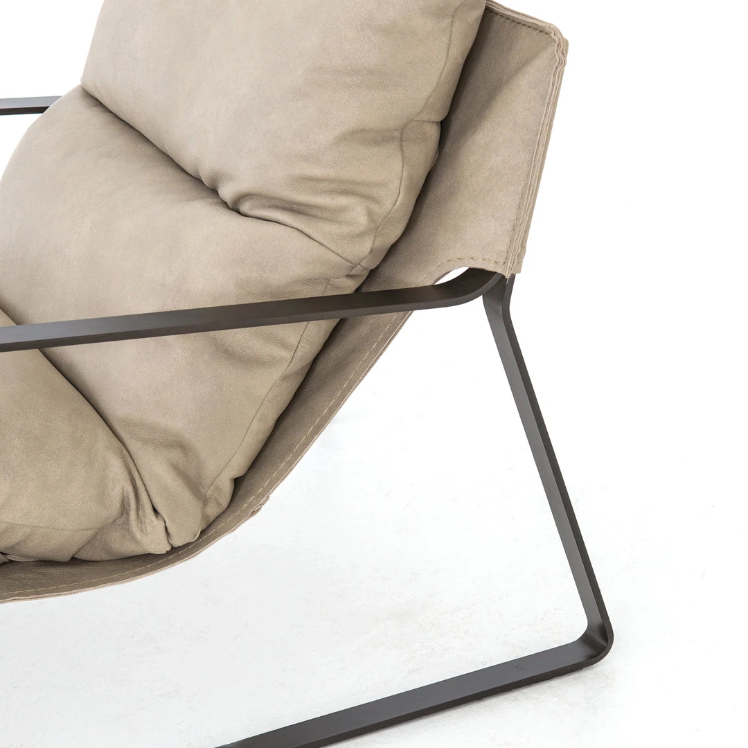 Super stylish, the Emmett Sling Chair in Umber Natural from Four Hands offers effortlessly cool for your space. Sling style seating of light leather sits low and curved for a fresh take on a classic form. Slim, gunmetal iron framing elevates the drama factor of this hip design.