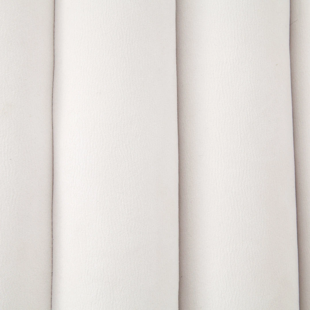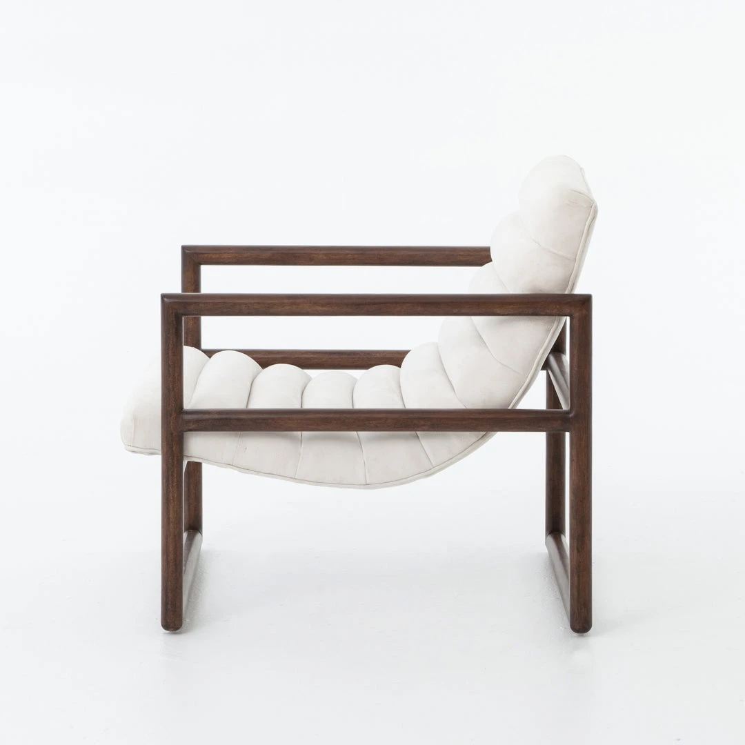The Fitz Chair in Gaucho Chalk presented by Four Hands offers an invitingly curved, chalk white faux Nubuck framed to wonderful effect. Subtle, horizontal channeling plus squared off, repetitive lines create alluring negative and positive space. Elegant color and texture bring sophistication to this classic shape with clean lines and just right sizing.
