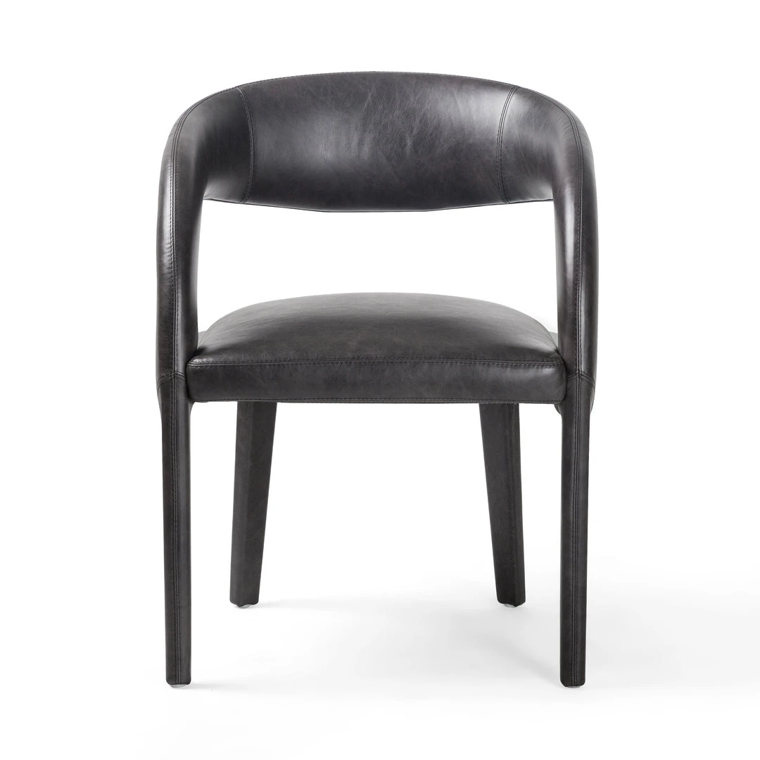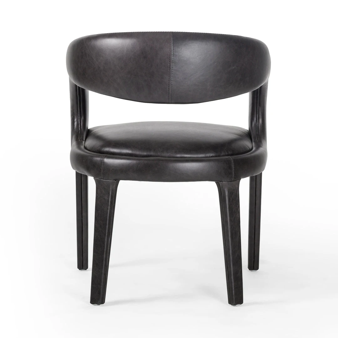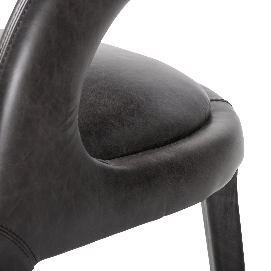 Strike a pose. The Hawkins Dining Chair in Sonoma Black features well-curved and finely sculpted, black top-grain leather exclusive to Four Hands. The Hawkins makes for a unique and shapely addition to the modern dining room.