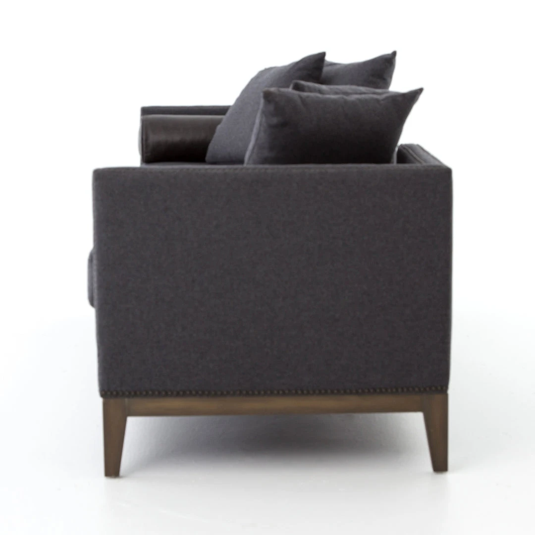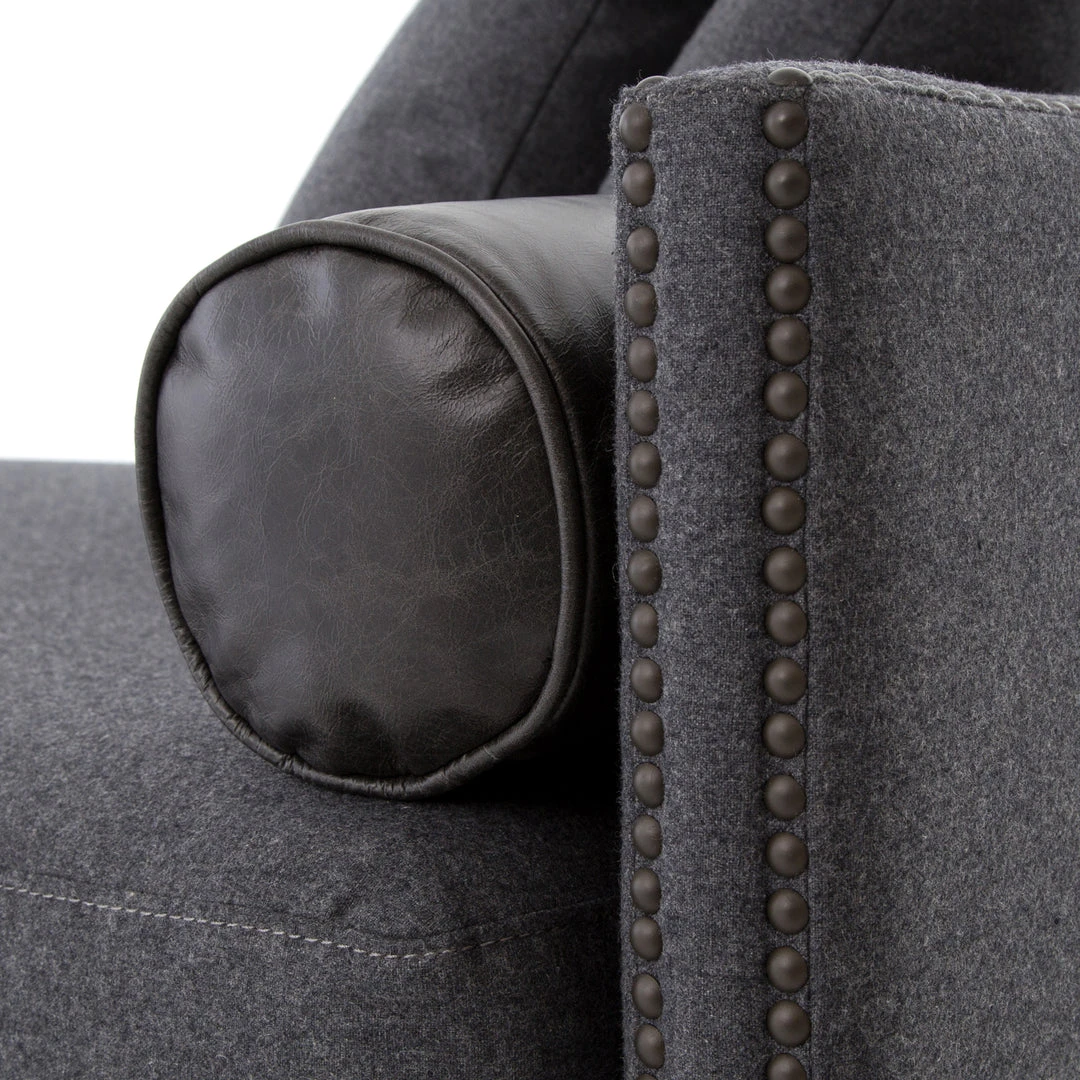 The Mercury Double Chaise in Charcoal Felt from Four Hands features an elegant mix of materials and an open chaise design creating distinctive seating for your home. Weathered oak with charcoal felt bronze nailhead trim, and plush bolsters make this stunning seat the perfect piece to add to your home decor scheme. The Mercury Chaise by Four Hands is ideal for your master suite, family room or home office.
