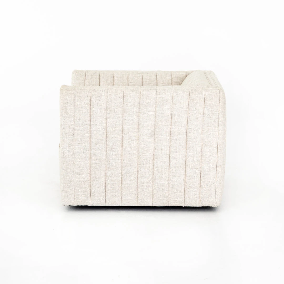 A modern take on a classic library chair, the Augustine Chair in Dover Crescent from Four Hands features neutral seating with a subtle herringbone pattern that adopts dramatic channeling for trend-forward texture and sumptuous sit. Swivel feature amps up a fresh appeal from every angle.