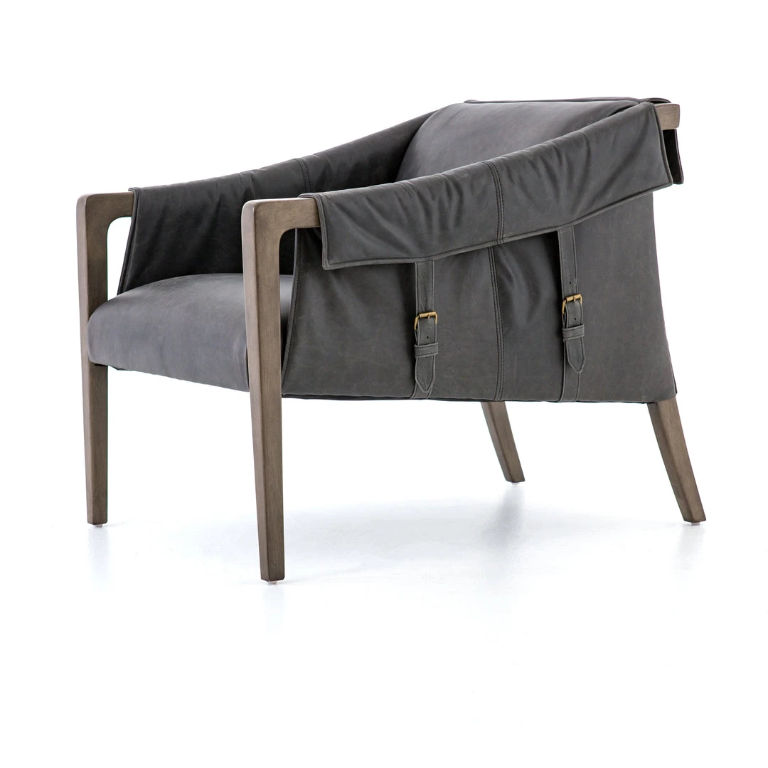 The Bauer Chair from Four Hands features lush seating of ebony leather over a grey birch frame. Side buckles give the Bauer a cutting-edge look that we love. A mid-century feel overall, the Bauer bring immediate architectural interest with its frame and construction. We love this chair in the bedroom or living room.