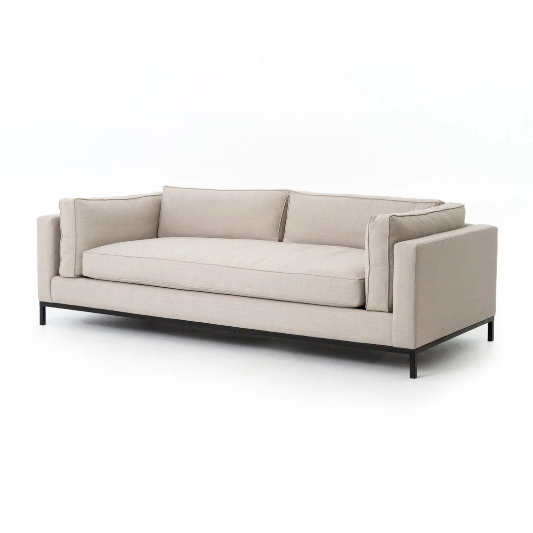The Grammercy Sofa in Bennett Moon from Four Hands offers flexible style, luxurious comfort, and family-friendly upholstery. Clean, simple lines and a black iron base keep everything casual and chic.