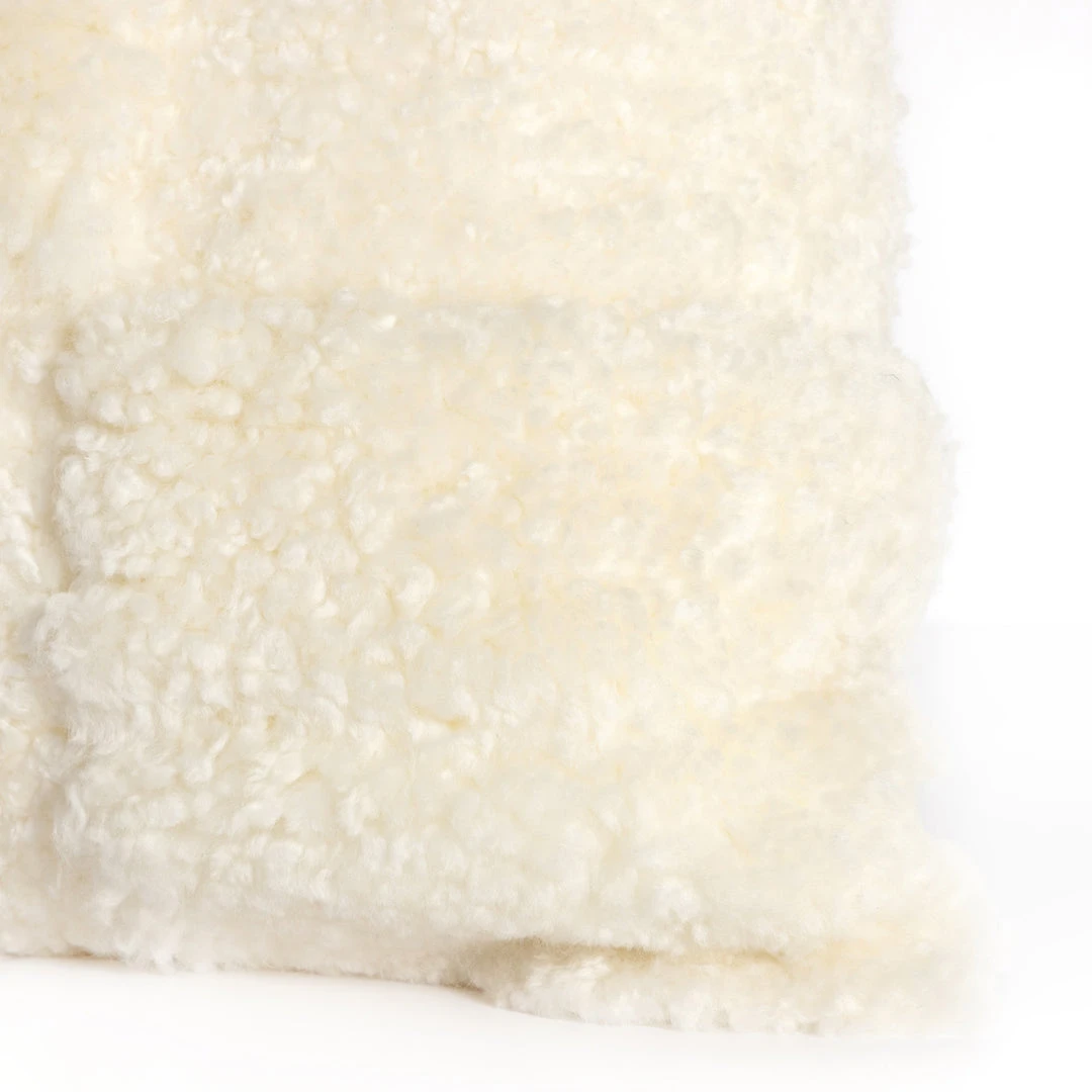 The Patchwork Shearling Lumbar Pillow in Cream from Four Hands features luxurious and soft sheared sheepskin. Add smooth, visual texture with this luxurious, neutral-colored lumbar pillow that begs to be touched. Throw several of these on the sofa or add into the Master Suite or guest room for a touch of softness and chic designer style.