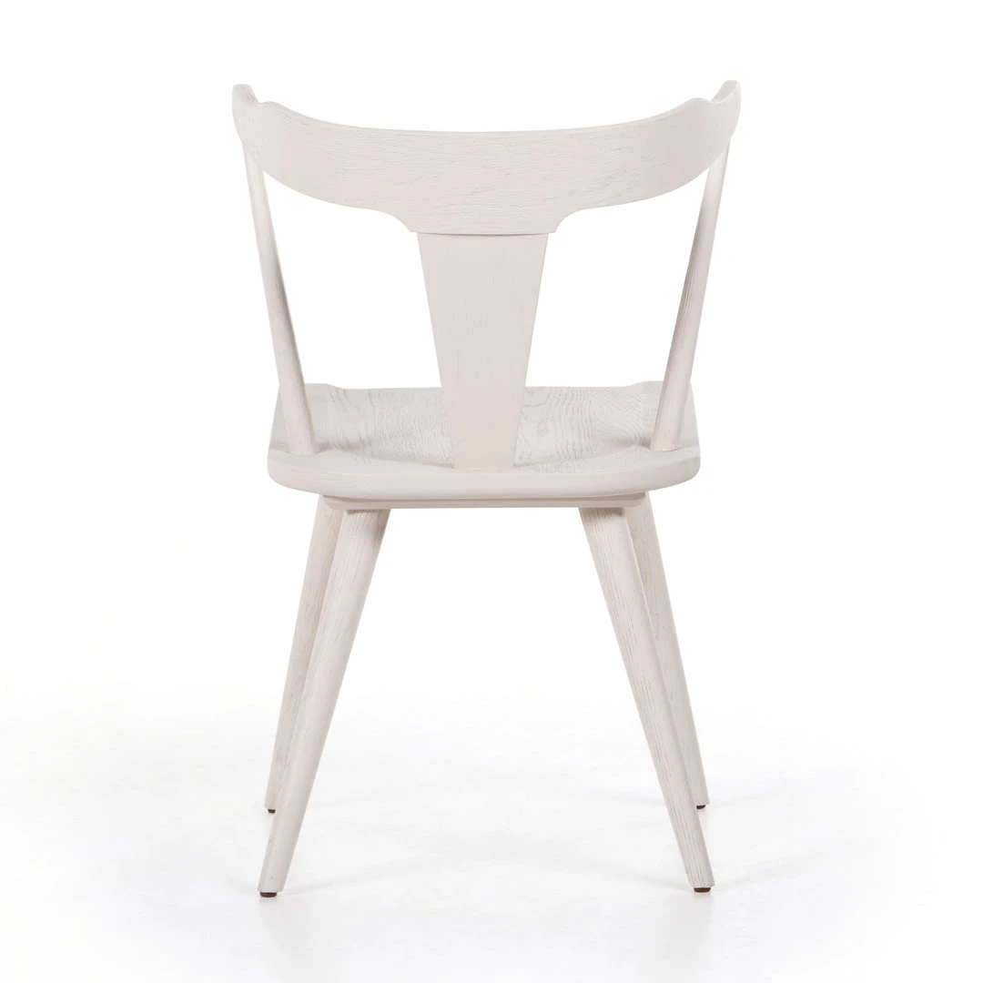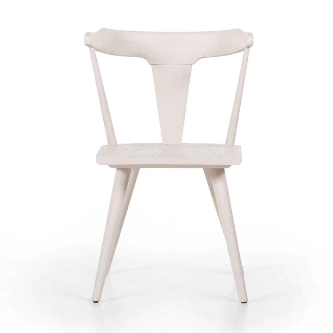 The Ripley Dining Chair in White Oak showcased by Four Hands is a stylish and versatile update to your dining space. This new take on the mid-century Windsor chair has a bowed, sculptural silhouette and off-white finish to highlight the natural grain of weathered oak.